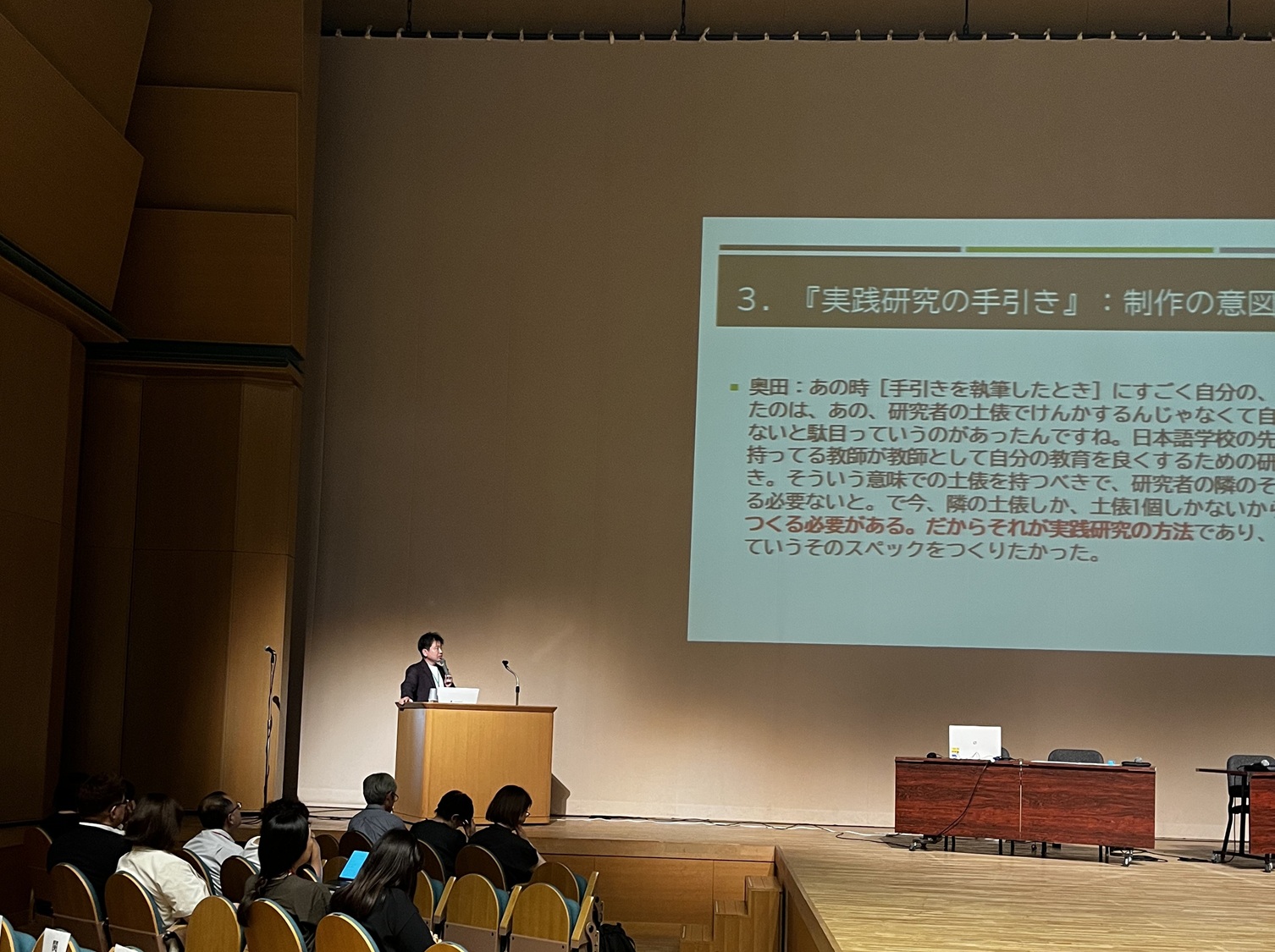 1日目午前は文部科学省及び出入国在留管理庁による講演、お昼にはポスター発表、デモンストレーションを行いました。午後は、武蔵野美術大学 グローバルセンター長 三代純平氏を講師に迎え、 講演「実践研究とは何か―日本語学校から実践を発信・共有することの意義―」を行いました。その後、パネルディスカッション「日本語・スペイン語・ドイツ語教育の実践者が語る工夫と挑戦」を行いました。これらのプログラムは、ライブ配信されました。