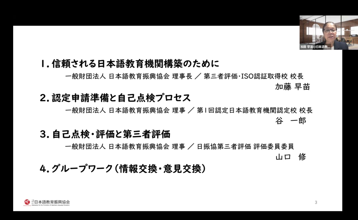 令和7年11月9日(日)、Zoomによるオンライン形式で「日振協第三者評価 内部評価委員養成セミナー」を開催しました。
