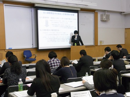 平成25年度生活指導担当者研修を、平成26年2月12日~13日に、代々木の国立オリンピック記念青少年総合センターで開催いたしました。今回は、法務省入国管理局の新家係長に「日本語教育機関をめぐる最近の出入国管理の状況」をテーマに特別講演を行っていただきました。また、2日間にわたるグループセッションでは、急増するアジア非漢字圏留学生の諸問題と対応について討議を行いました。